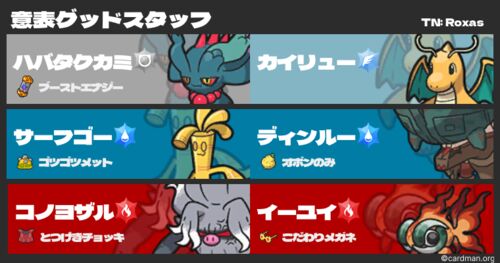 TN Roxas レート2102 97位 ※グッドスタッフって言葉がかっこよくて使いたかっただけ ◯目次 (今回から頑張ってページ内リンクを付けました) <1.構築経緯> ①原案〜環境序中盤 ②環境終盤 <2.個体解説> ・ハバタクカミ ・カイリュー ・サーフゴー ・ディンルー …